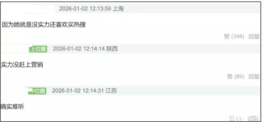 沈佳润虽然是在韩国出道的,但是出道后的资源都是内地给的。从父亲的演唱会到和父亲同场的活动,再到和父亲的好友在跨年晚会上的合唱,沈佳润出道后的每一个舞台都离不开父亲的助力。同时,每一个舞台也毫无例外的翻车了,跨年演唱会舞台直接因“跑调”登上热搜。霸占资源,实力却跟不上,沈佳润的口碑瞬间崩盘。